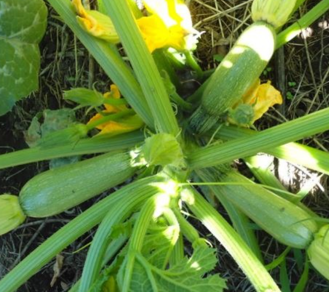Su cosecha es a los 60 días. Los frutos que producen son ligeramente en forma alargada con rayas moteadas en color verde y verde oliva. Puede alcanzar un tamaño bastante grande manteniéndose bastante tierno y delicioso como una calabaza de verano.